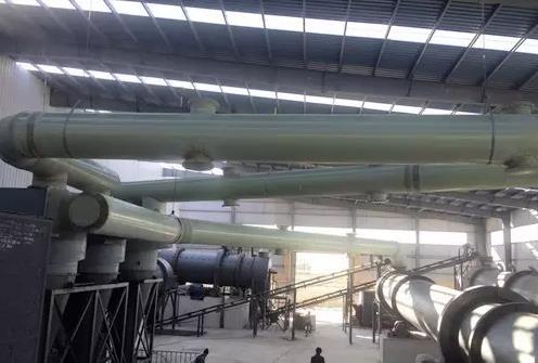 化肥廠因擴(kuò)大生產(chǎn),新建年產(chǎn)量15萬噸生產(chǎn)爐窯,針對爐窯設(shè)備產(chǎn)生的煙氣及灰塵特性,選用具有耐腐蝕性的玻璃鋼管道。